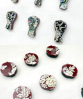 - Due to the handmade nature of the pieces and the reuse of discarded materials, the shapes of the inlay sections are randomly produced