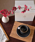 Product : 80mm (top diameter) × 60mm (bottom diameter) × 80mm (height), 150mm (Saucer diameter), 140ml